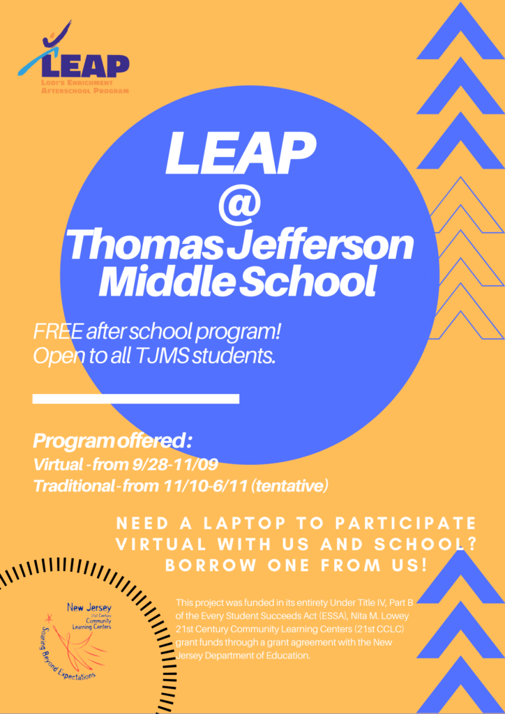 Thomas Jefferson Middle School students are invited to join the LEAP after school program at no charge.