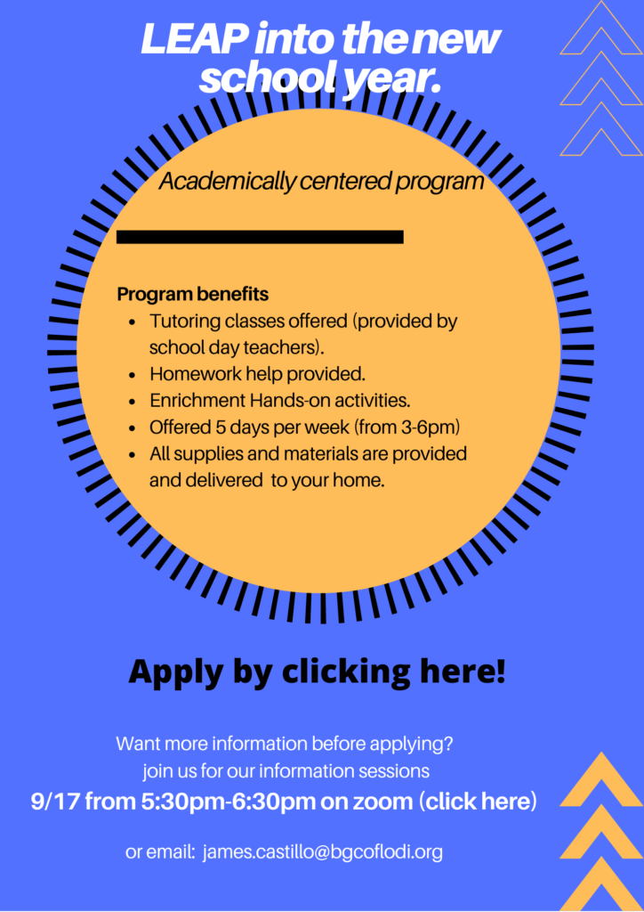 LEAP, Lodi’s Enrichment A Program at Thomas Jefferson Middle School is brought to you by the Boys & Girls Club of Lodi and the Lodi Public Schools. This new (2019) STEAM (Science, Technology, Engineering, Art and Mathematics) themed program is fully funded by a 21st Century Grant, and is only available to 201 students at Thomas Jefferson Middle School, in grades 6-8. LEAP is grounded in the Boys & Girls Clubs positive youth development strategy to make a positive impact in each child, by combining academic and enrichment programs.